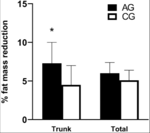 10週間後、両グループはほとんど同じだけの体脂肪量を失いましたが、トレッドミルに加えて腹筋トレーニングを行っていたグループのほうがお腹周りの脂肪が落ちていることを発見しました。そして、興味深いことにトレッドミルのみを長時間行っていたグループは腹筋を追加したグループよりも脚の脂肪がより落ちていることを示しています。