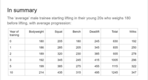Redditというサイトの大規模な調査では20代の男性トレーニーが男性トレーニーがベンチプレス100kg。つまり220ポンドを持ち上げるためにはトレーニングを始めてからおおよそ2年ほどかかるようです。これはインターネットのアンケート調査であるため、若干誇張されている可能性がありますが平均的にはこれくらいの時間がかかるということを覚えておいてください。