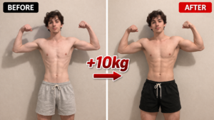 そしてここで重要なのが、この量がどれくらいの変化なのかです。10kgの筋肉量の増加は、見た目を大きく変えるレベルの変化です。体脂肪率にもよりますが、この10kg前後の増加で多くの人が「体が変わった」と明確に認識されるようになります。つまり見た目を変えるという意味での現実的な目標は、この10kg前後と考えてください。